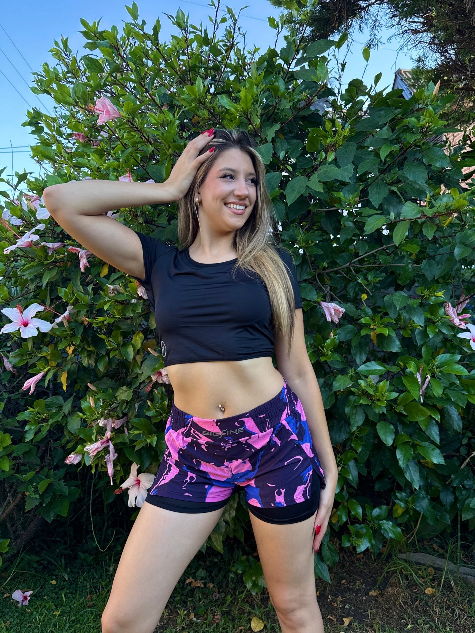 Short con calcita 1554’3 negro c/flores negras